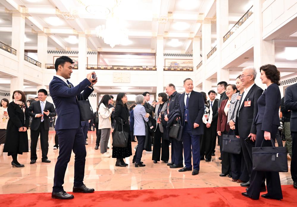 3月7日,海尼扎提·托呼提在北京人民大会堂内拍摄。