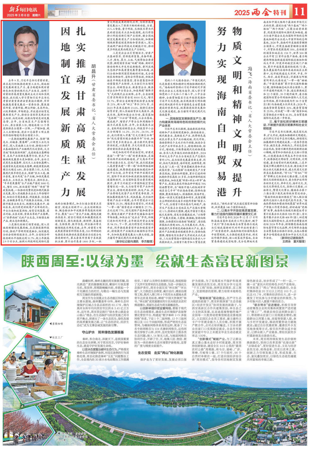 去年9月,习近平总书记考察甘肃,要求我们积极推进新型工业化,因地制宜发展新质生产力,着力构建体现甘肃特色和优势的现代化产业体系,指明了甘肃经济高质量发展的主攻方向和实践路径。我们深入学习贯彻习近平总书记考察甘肃重要讲话重要指示精神,牢牢把握高质量发展这一首要任务,聚焦国家所需、甘肃所能、群众所盼、未来所向,以改革精神、市场理念、开放意识培育发展新质生产力,推动全省经济呈现出向上向好、向优向新、向数向智的良好发展态势。去年,全省地区生产总值增长5.8%、居全国第三位,增速连续10个季度保持在全国第一方阵,一产增加值、规上工业增加值、进出口总值等8项主要经济指标增速均居全国前三位。