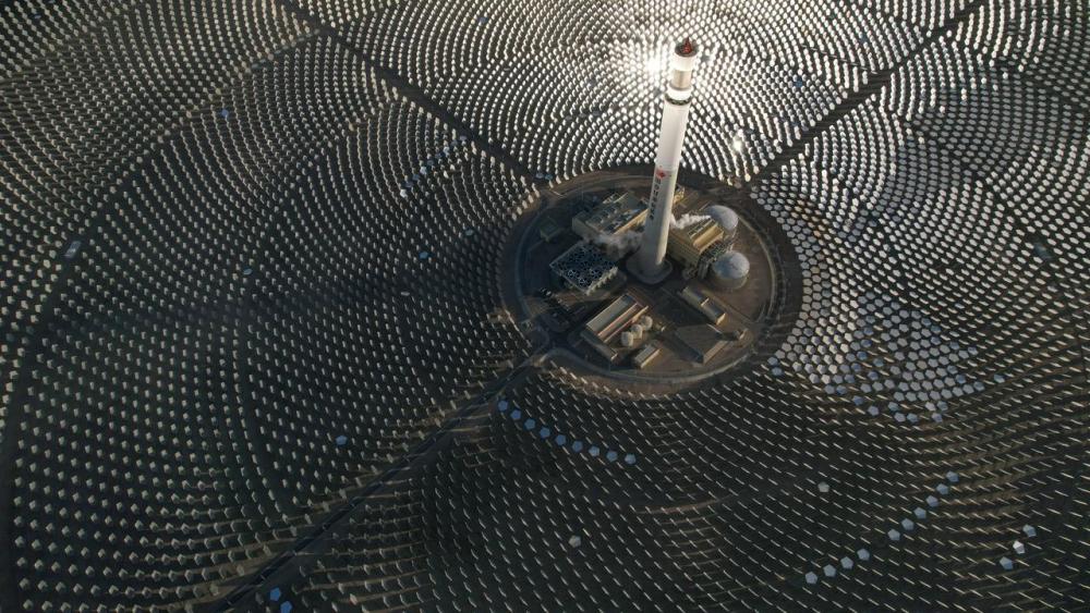 这是2024年11月30日拍摄的并网发电的阿克塞汇东新能源光热+光伏试点项目。新华社记者 陈斌 摄