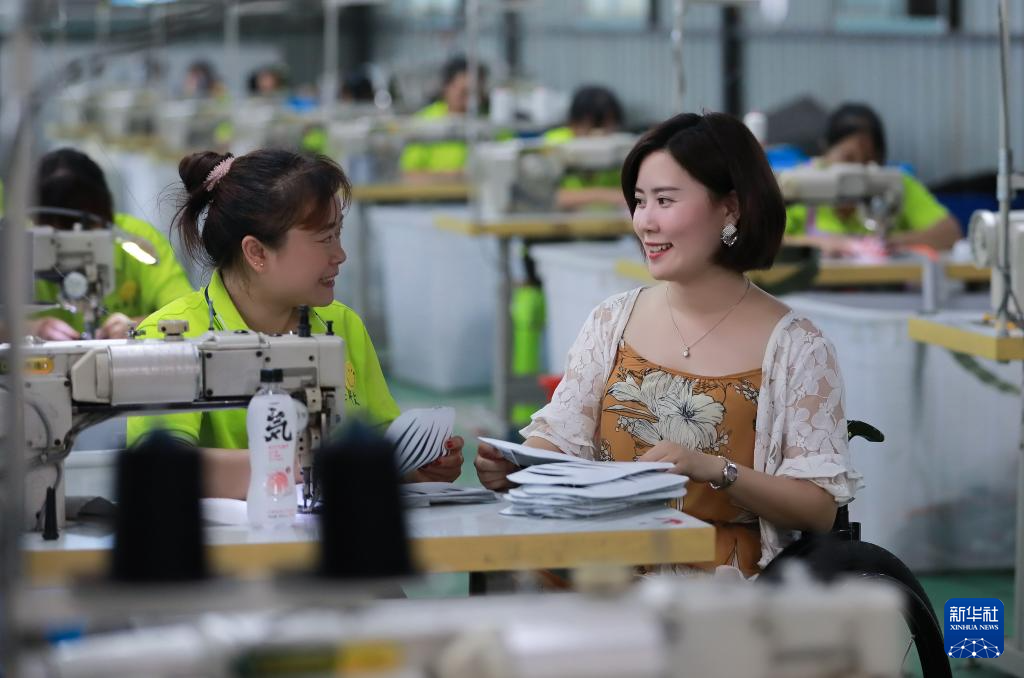 湖南省邵阳市肢残协会主席,湖南七七科技股份有限公司创始人杨淑亭(右)。新华社发(资料照片)