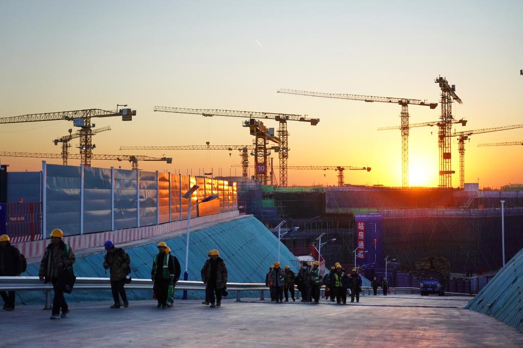落日余晖下的雄安新区国贸片区建设现场(2025年1月15日摄)。新华社记者 牟宇 摄