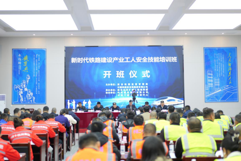 图为西安铁路监管局主办的新时代铁路建设产业工人安全技能培训示范班开班仪式现场。