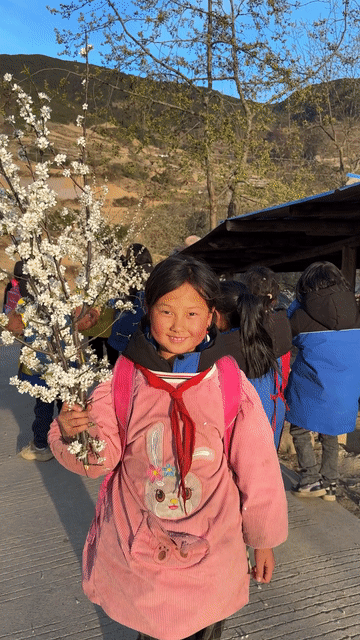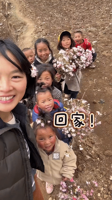 (每年春天,支教老师会和学生们一起外出采花。丰婷婷供图)