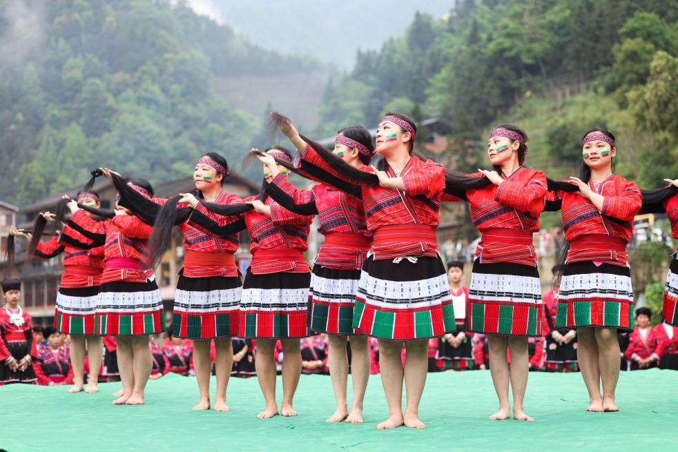 这是2023年4月22日在广西桂林市龙胜各族自治县黄洛瑶寨拍摄的瑶族祭祀舞蹈表演。新华社记者 胡星宇 摄 策划:刘金海