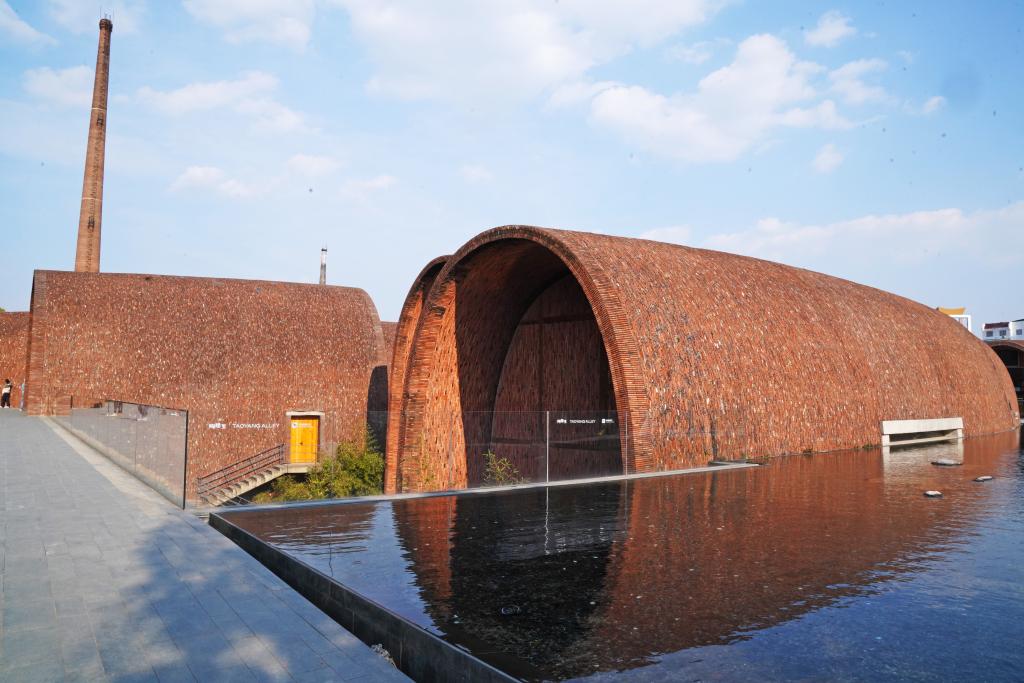 年轻人是其主力“推荐官”。他们首先惊叹于建筑的设计之美——线条简约、极具视觉冲击力的巨型建筑集群。红砖砌成的窑洞造型背映蓝天联排矗立,仿佛时空隧道,带人穿越千年,遥想这片土地曾上演的窑火盛况。随手一拍,都是高级感十足的几何大片。“当心!等待网红机位拍摄半小时起步”之类的探访攻略,在社交平台上广为流传。