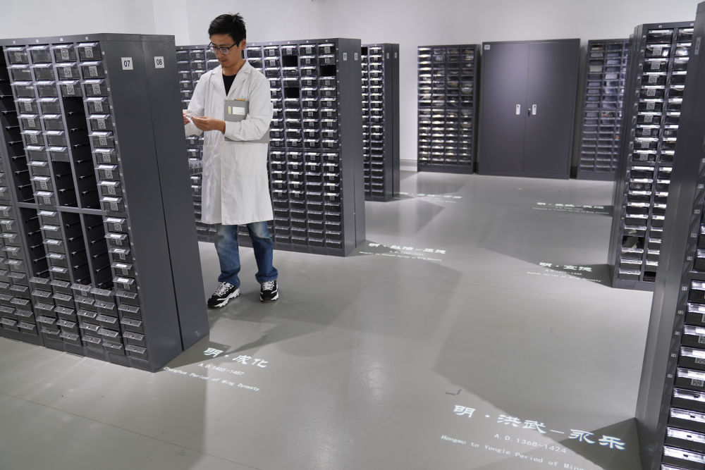 工作人员在景德镇御窑博物院古陶瓷基因库内工作(2023年5月16日摄)。新华社记者 周密 摄
