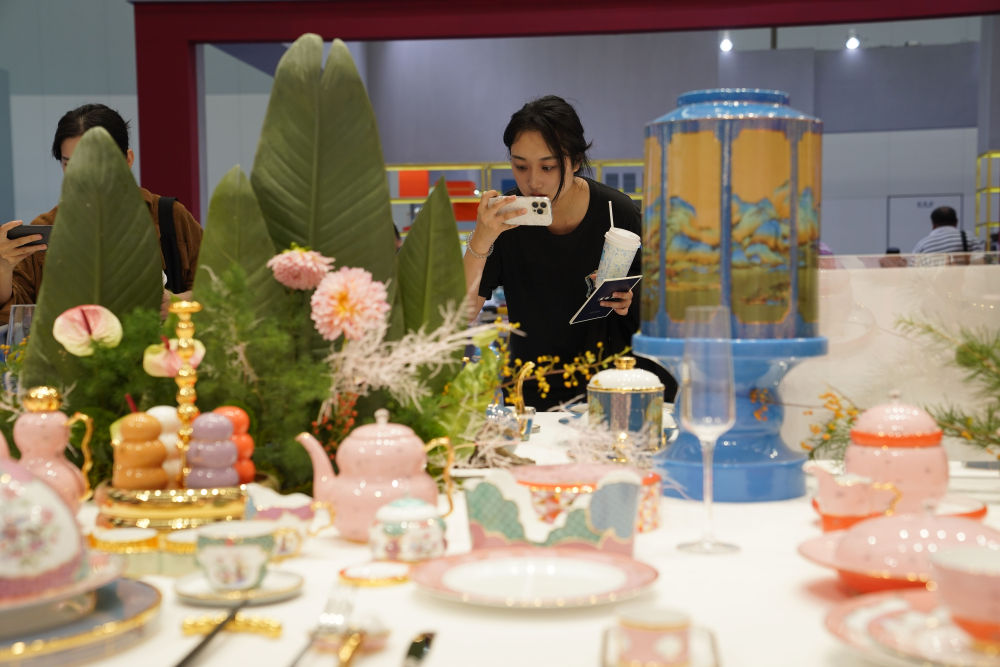 一名参观者在2024中国景德镇国际陶瓷博览会上拍照(2024年10月18日摄)。新华社记者 周密 摄