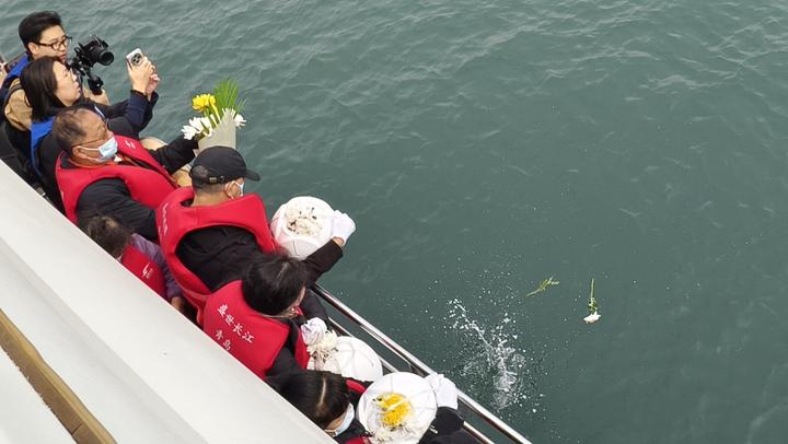 在近日举行的“礼安齐鲁·生命礼赞”2025年青岛海葬活动中,逝者家属将鲜花撒入大海。新华社记者 丛佳鑫 摄