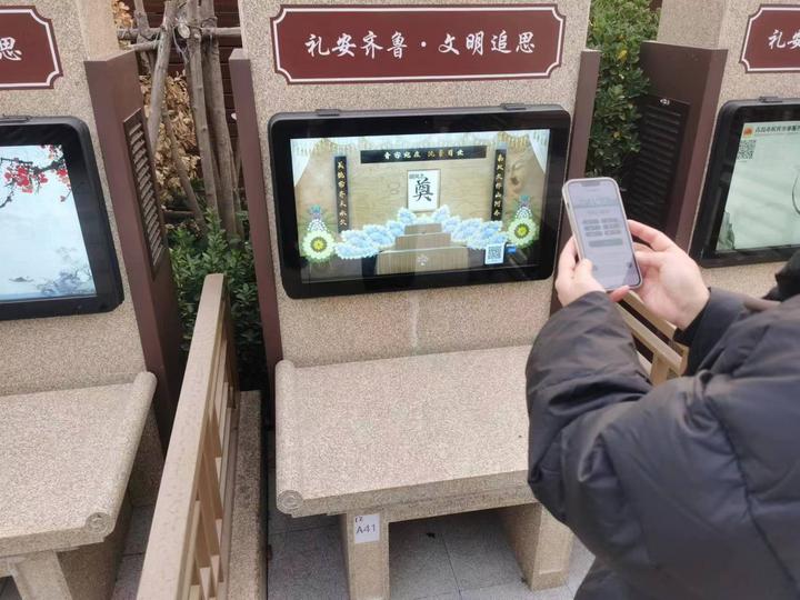 逝者家属在青岛市殡葬事业服务中心电子祭祀广场使用电子祭祀的方式缅怀亲人。(青岛市民政局供图)