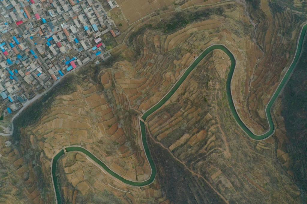 在河南省林州市任村镇阳耳庄村拍摄的红旗渠总干渠(2025年3月25日摄,无人机照片)。新华社记者 郝源 摄