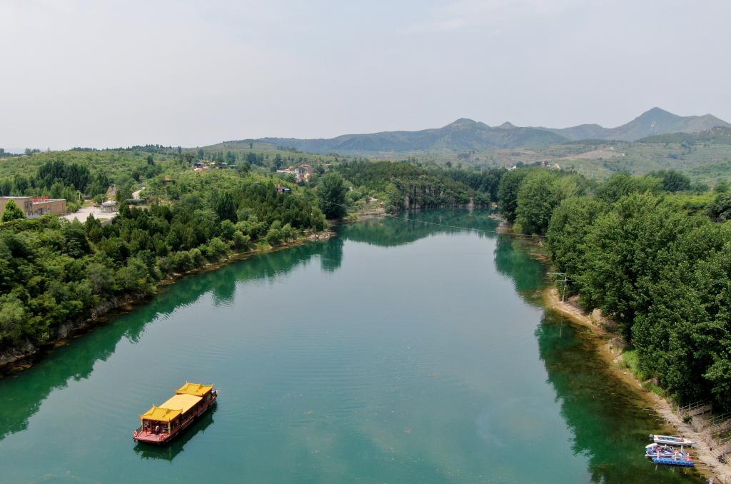 河南林州市万泉湖景区(2023年6月16日摄,无人机照片)。新华社记者 郝源 摄