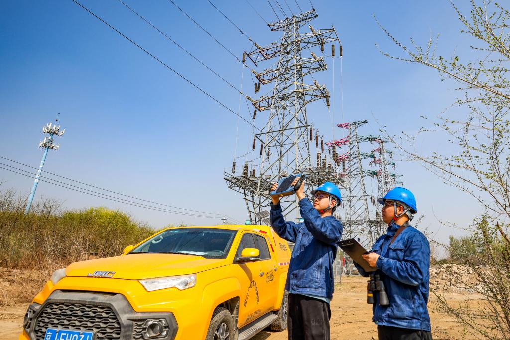 4月10日,国网北京昌平供电公司员工在阳坊镇温南路对重点线路开展特巡。(国网北京分公司供图)