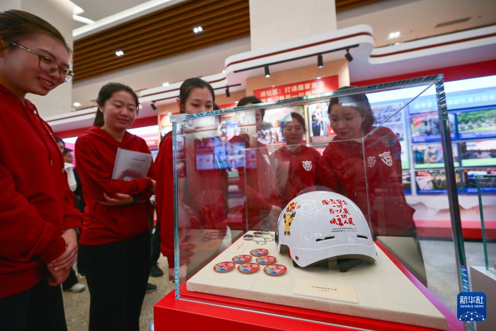 4月15日,观众参观“大国安澜 复兴有我——全民国家安全教育10周年主题展览”。新华社记者 李鑫 摄