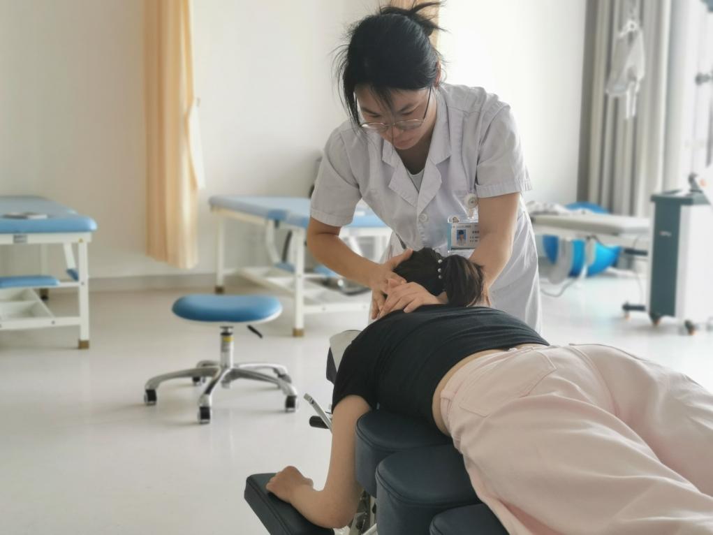 西安交通大学第一附属医院疼痛科治疗师在为患者进行推拿按摩。新华社发