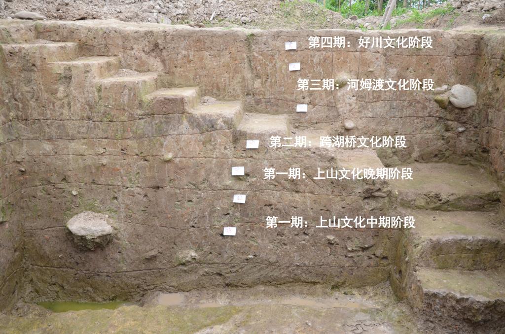 在浙江仙居下汤遗址的一处探方里,可以看到它经历了4个新石器文化阶段(资料照片)。新华社发(中共仙居县委宣传部供图)