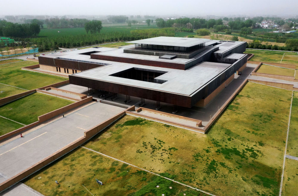 从空中俯瞰,二里头夏都遗址博物馆旁,国家夏商文明考古研究中心正在建设,其屋顶轮廓已初步显露出汉字“源”的形状——寓意中华王朝文明的起源。
