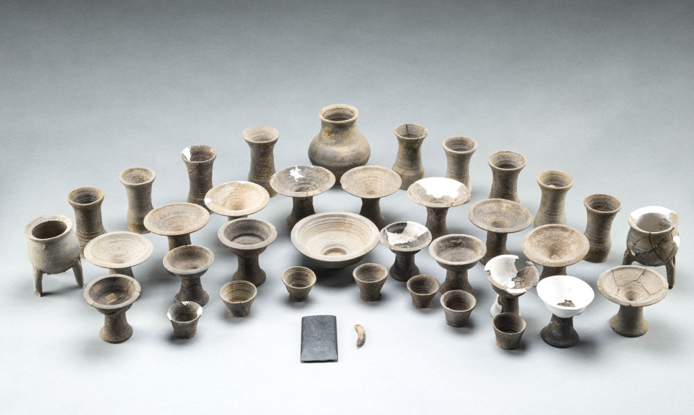 这是河南叶县余庄遗址出土的陶礼器组合(资料照片)。新华社发