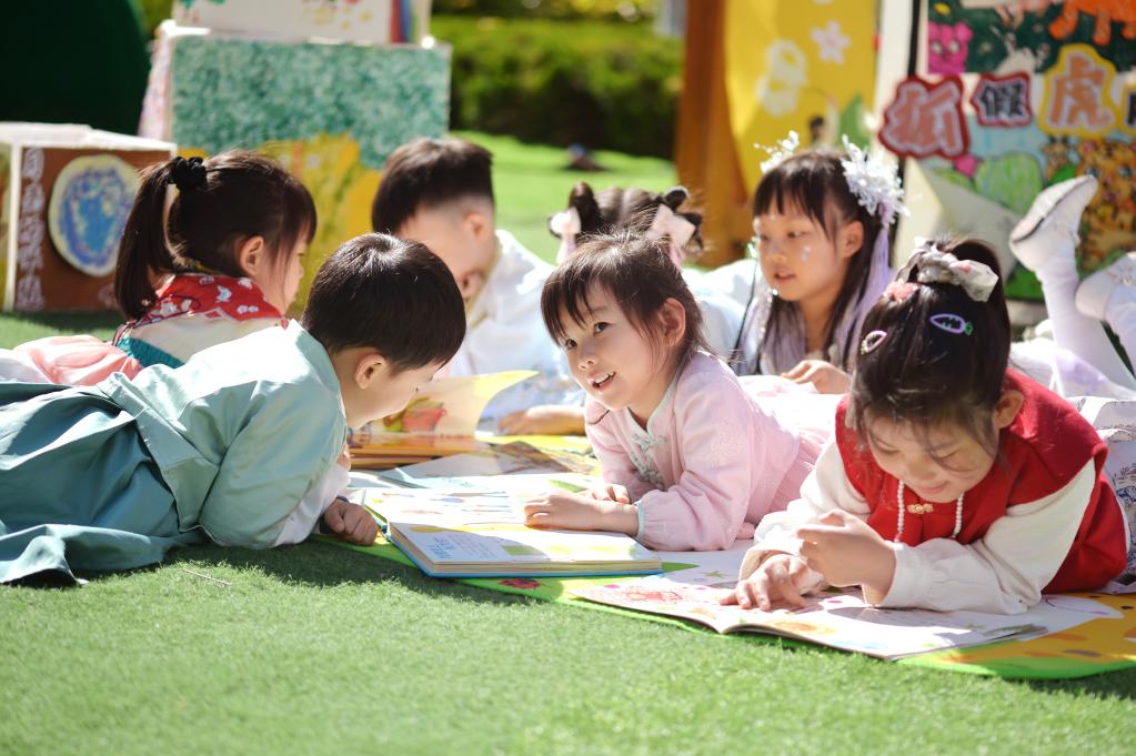 小朋友们在春光中享受阅读的乐趣。新华社发(王海滨摄)
