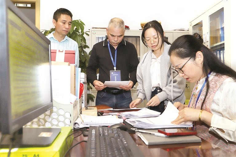 “五一”将至,浙江省金华市婺城区纪委监委坚守节点,对重点场所、重要领域和关键环节开展监督检查,打好纠治“四风”组合拳。图为该区纪委监委联合审计、财政等部门对某单位“三公”经费使用和津补贴发放情况进行抽查。楼婷 摄
