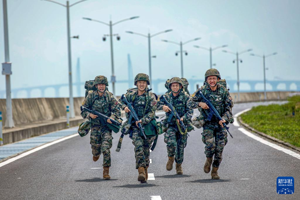 武警广东总队珠海支队执勤一中队官兵进行武装奔袭(2024年5月6日摄)。新华社发(任森 摄)