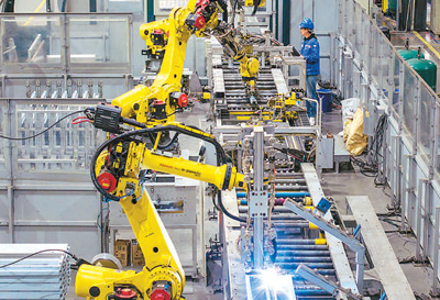 根据最新国家标准,4层及以上住宅应设置电梯。图为近日,在位于浙江省宁波市鄞州区东吴镇的宁波宏大电梯有限公司,智能生产车间的机械臂在加工电梯部件。胡学军摄(人民视觉)