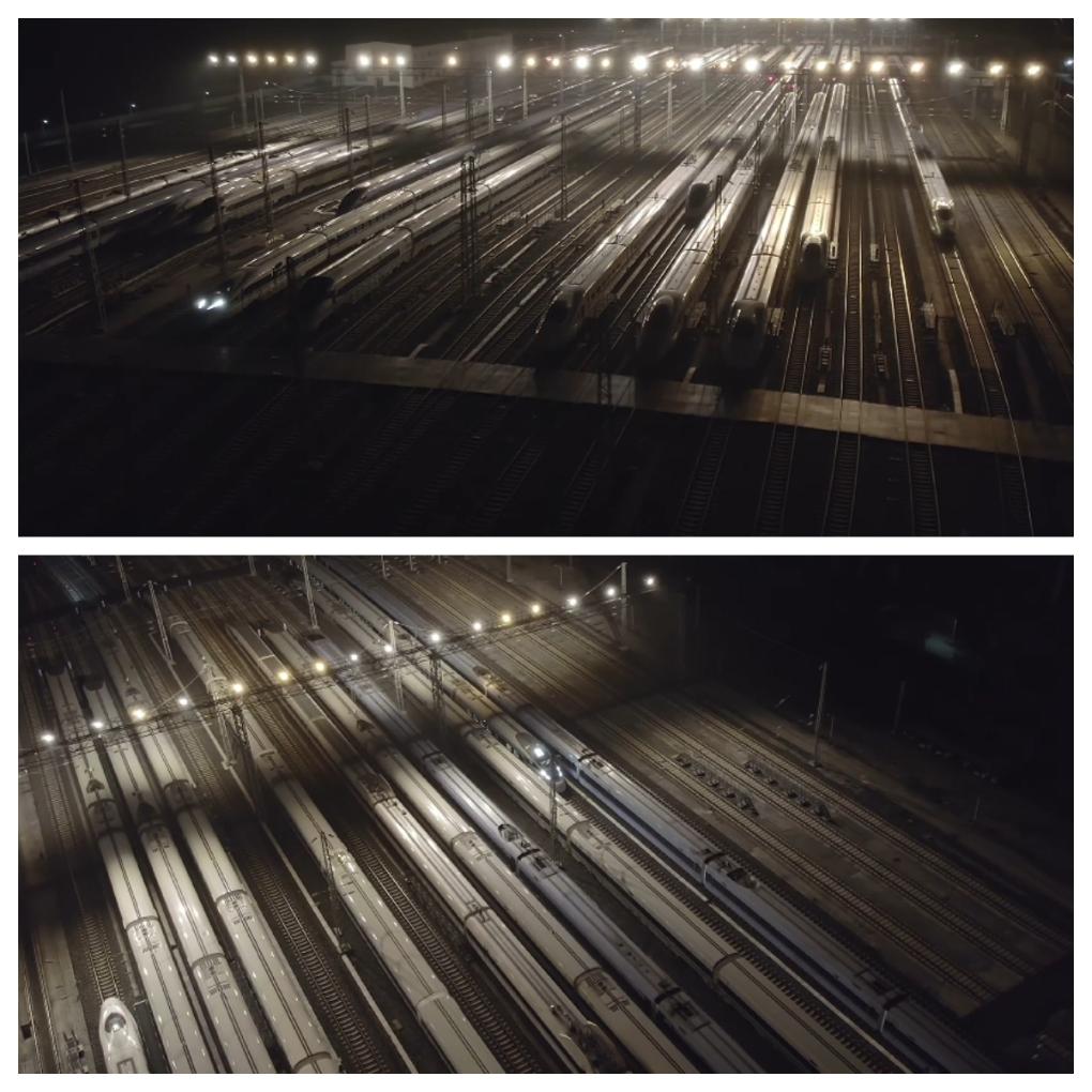“五一”期间,是铁路客流高峰期。夜晚的贵阳北动车所,空中鸟瞰存车线灯火通明,一列列完成检修的动车组集结完毕,犹如“陆地航母”蓄势待发。