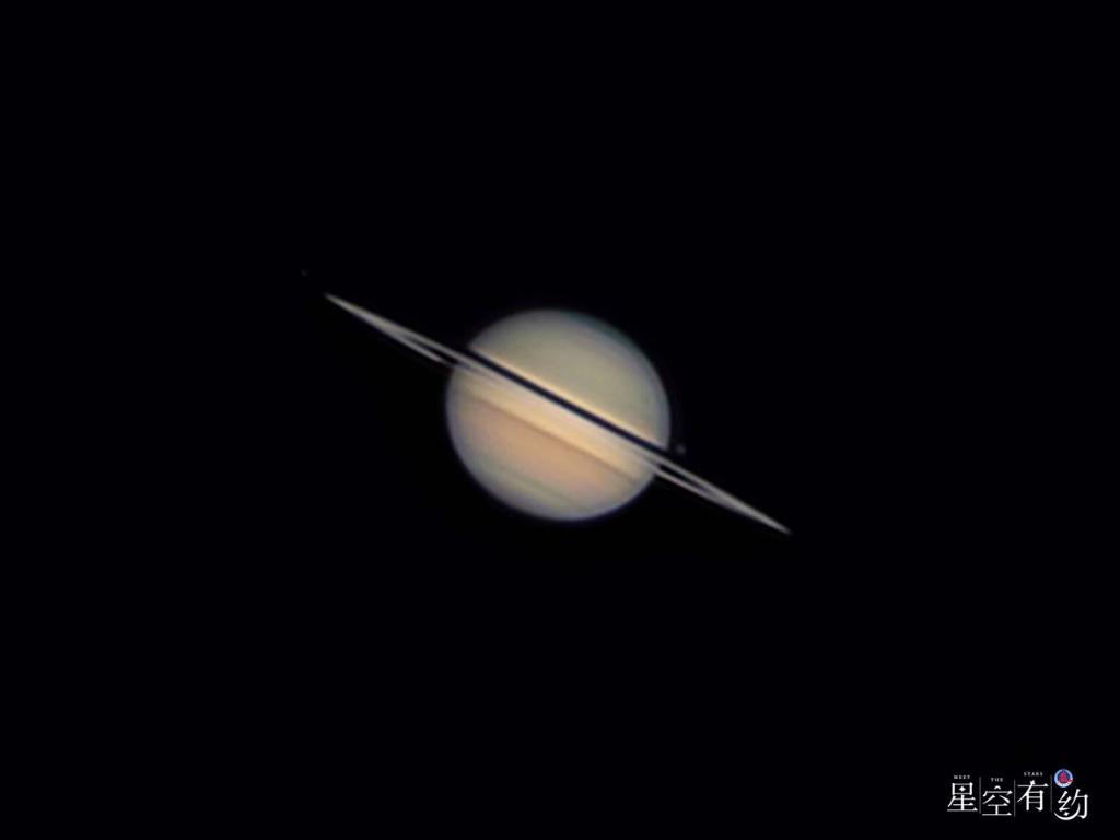 2025年4月29日在广东中山拍摄的土星特写,土星中间的黑线是土星环及其投影。(汉玲 摄)