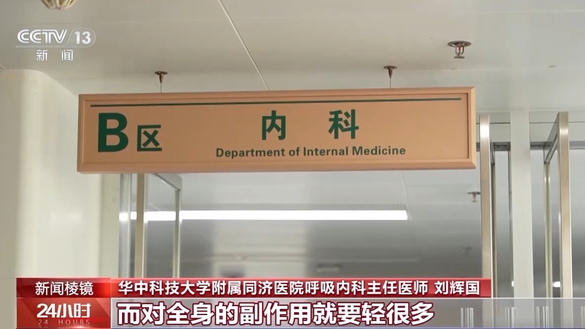 华中科技大学附属同济医院呼吸内科主任医师 刘辉国:吸入性治疗是哮喘病人治疗的核心, 所以今年世界哮喘日里面就提到一个口号, 让吸入性治疗惠及所有的哮喘患者。这个也进一步说明了哮喘病人应该尽量采用吸入治疗,药物可以直接进入到呼吸的气道,而对全身的副作用轻很多,所以吸入治疗是慢性气道疾病非常重要的一环。