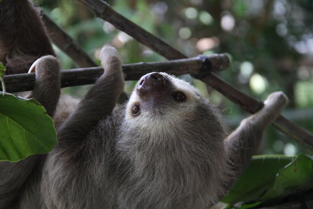 2021年4月20日,树懒“拉蒂”在位于哥斯达黎加埃雷迪亚的“巨嘴鸟救助牧场”玩耍。新华社记者 范小林 摄