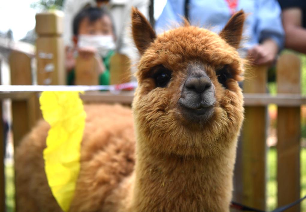 这是2020年4月29日在河南洛阳市王城公园动物园拍摄的小羊驼。 新华社记者 李嘉南 摄