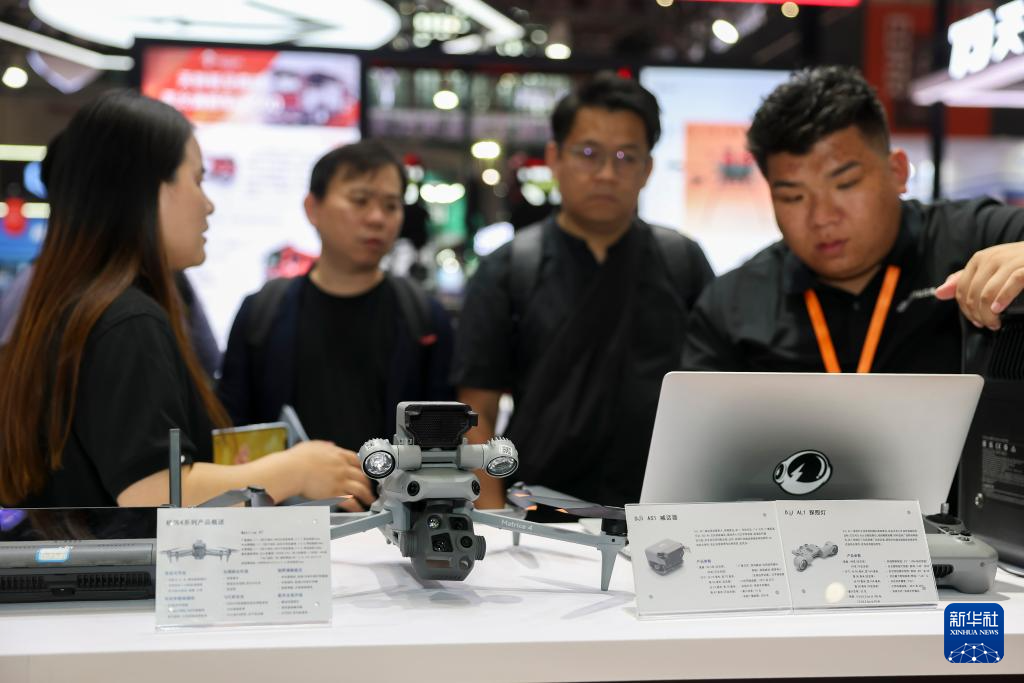5月13日,参观者在大疆展位了解行业无人机在应急救援中的工作流程。新华社记者 王翔 摄