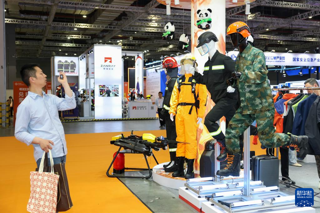 5月13日,参观者拍摄现场展出的防火救援装备。新华社记者 王翔 摄