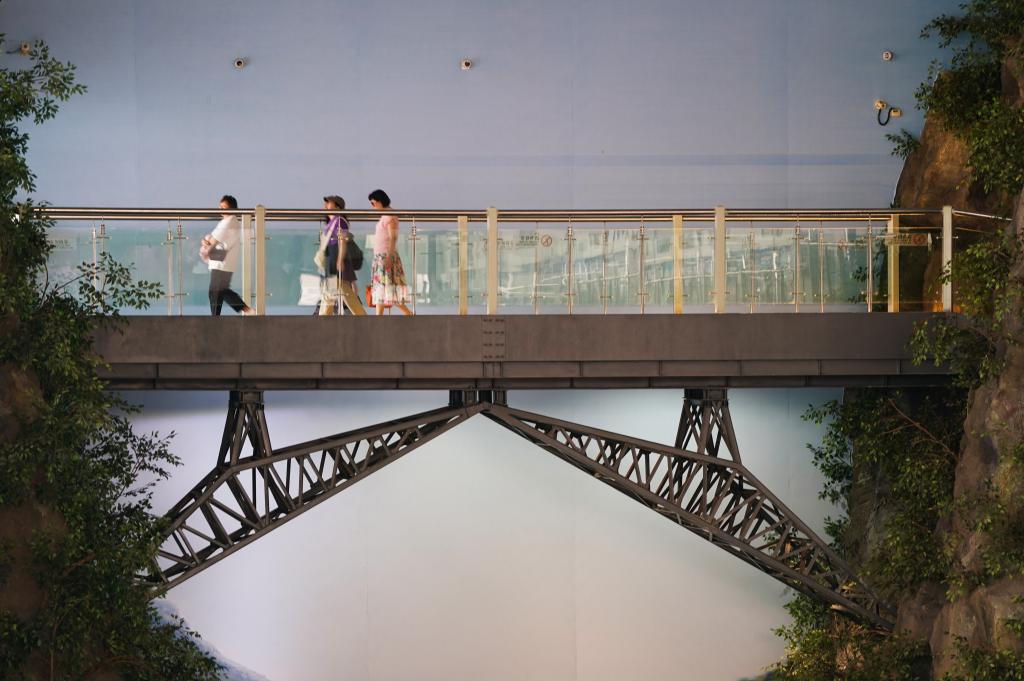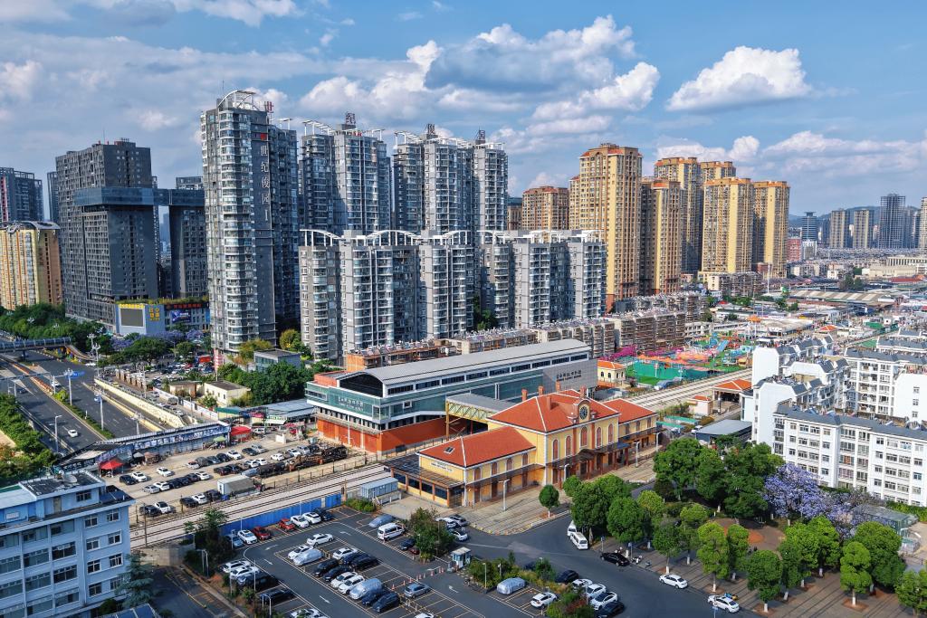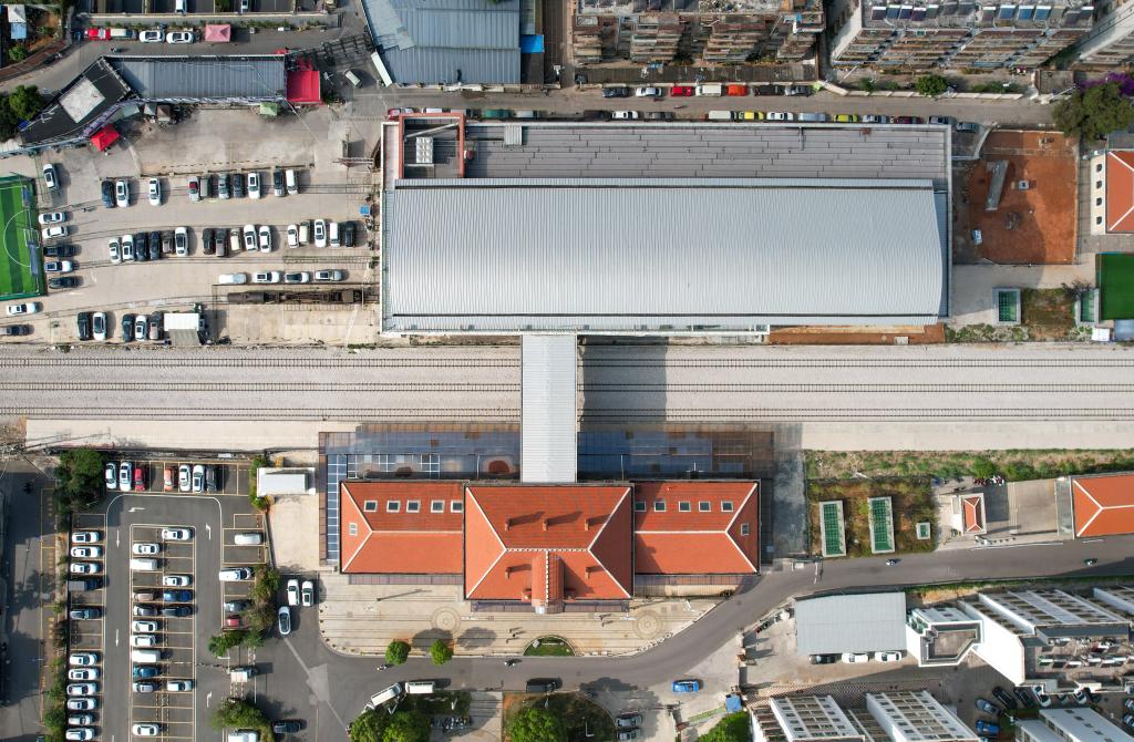 从高空鸟瞰,博物馆神似一个“工”字形的铁路钢轨剖面,象征历史与现实的交融。总建筑面积超8000平方米的博物馆内,收藏和展示米轨、寸轨、准轨铁路的机车、工具及文献等,其中既有滇越铁路标志性工程“人字桥”的模型,也有被称为“镇馆之宝”的国家一级文物“米其林”内燃动车组等。