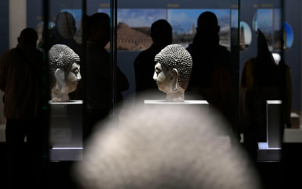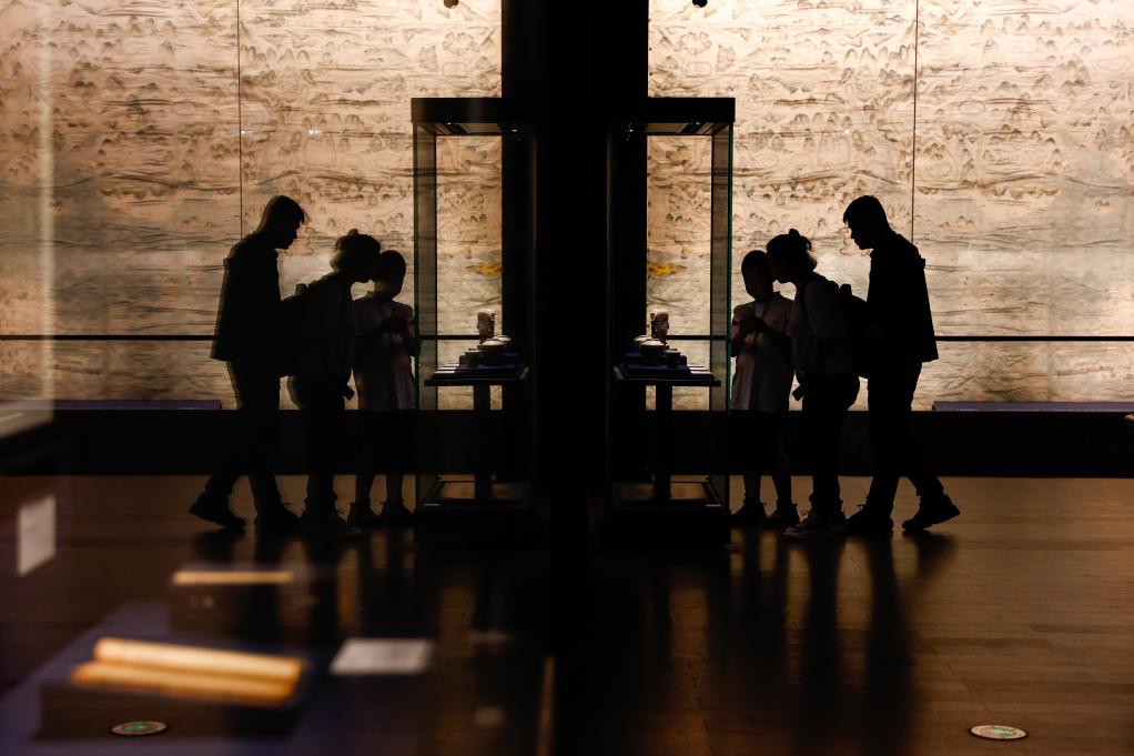 2024年5月14日,游客在宁夏博物馆观赏文物。新华社记者 王鹏 摄