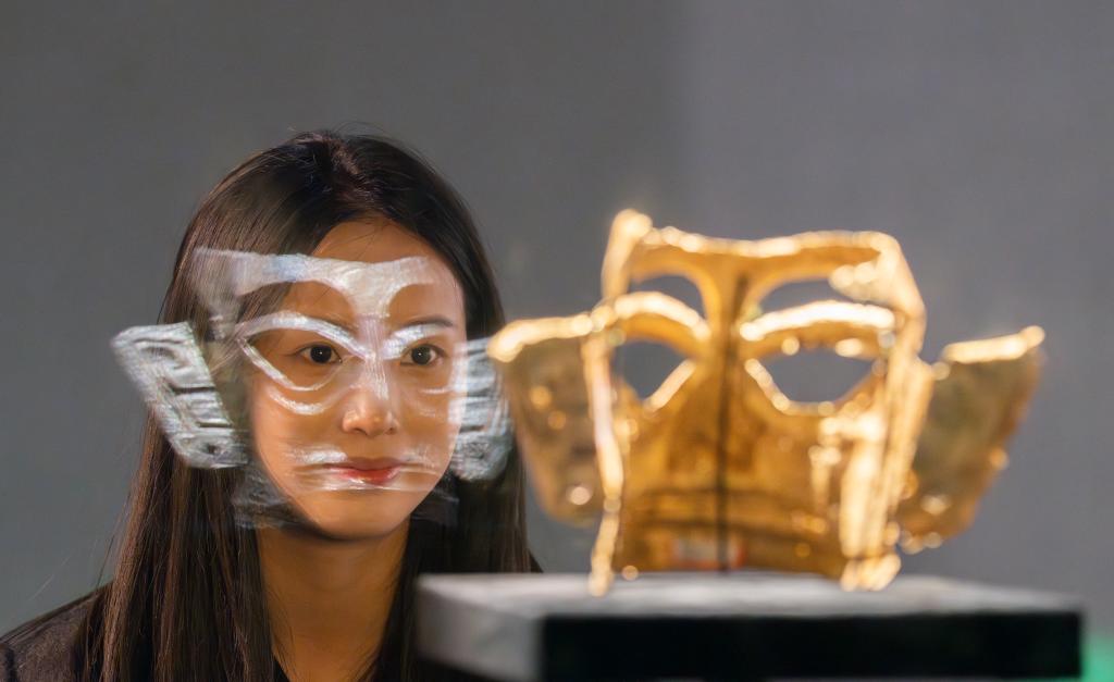 这是2024年7月23日在三星堆博物馆文物保护与修复馆拍摄的修复后的金面具。新华社记者 王曦 摄