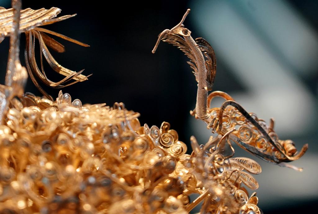 这是2024年5月14日在北京服装学院民族服饰博物馆拍摄的黄平苗银凤冠局部。新华社记者 张晨霖 摄
