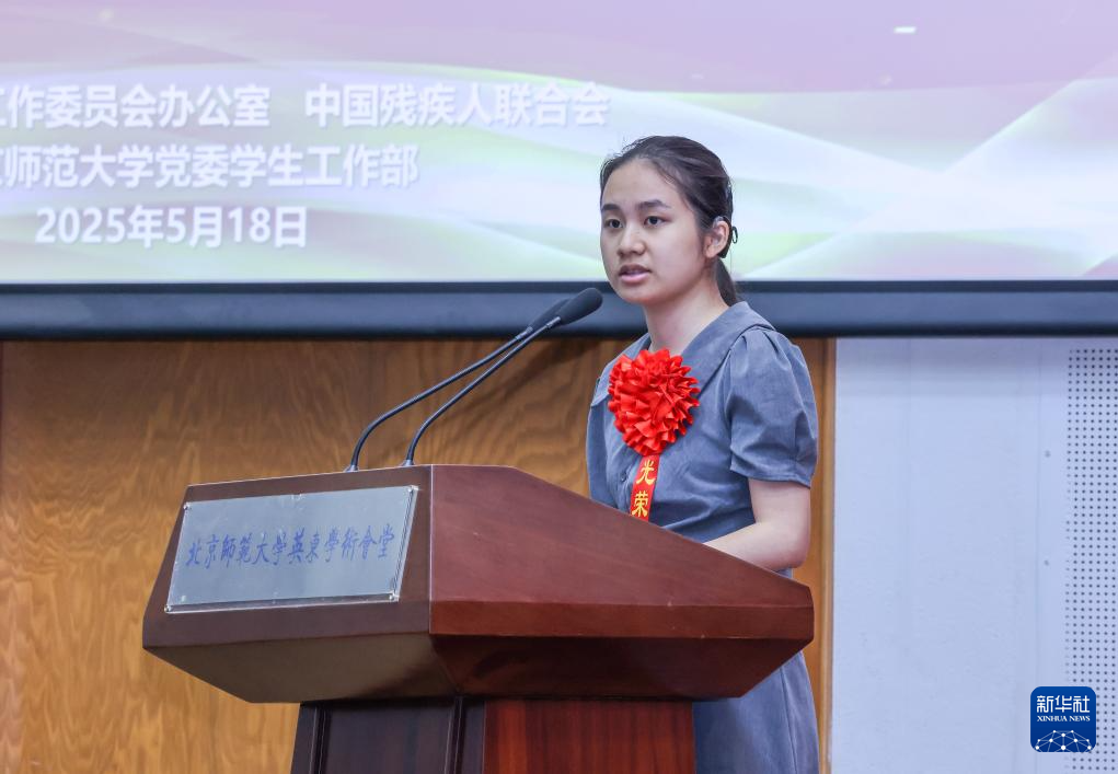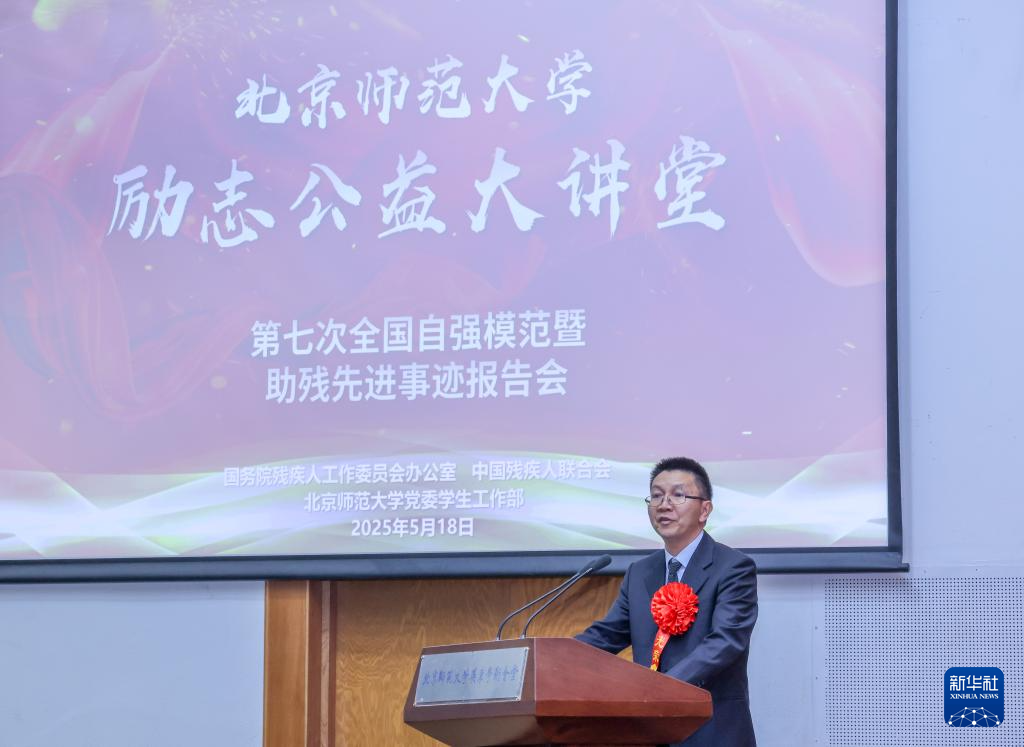5月18日在北京师范大学拍摄的第七次全国自强模范暨助残先进事迹报告会现场。新华社记者 殷刚 摄