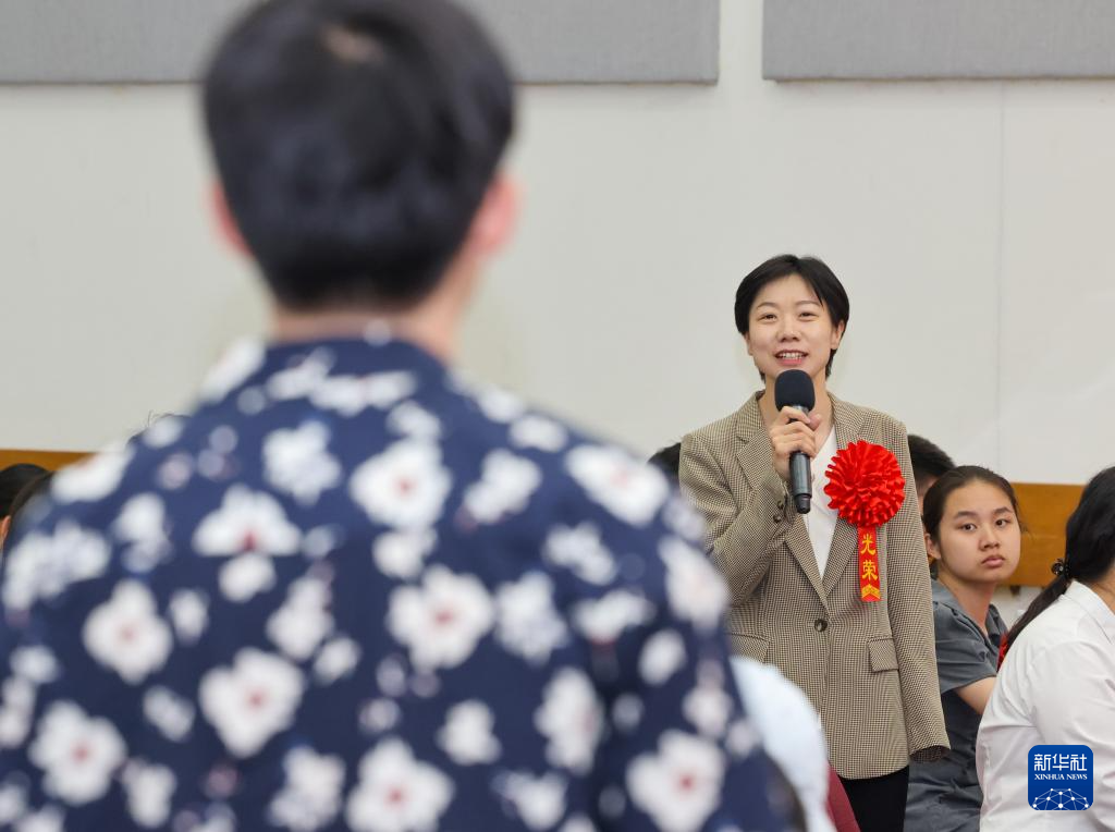 5月18日,江苏省东台市特殊教育学校高级教师李康在现场进行宣讲。新华社记者 殷刚 摄