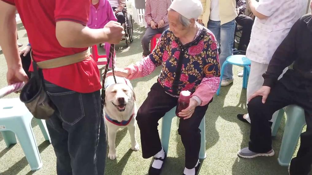 每年四月的最后一个星期三是“国际导盲犬日”。今年的“国际导盲犬日”前夕,古城西安的一支“汪汪队”依然穿梭于当地不少公益机构提供服务。这次来到西安莲湖庆松源老年公寓的拉布拉多犬“小七”,由于性格活泼,它已结束导盲犬训练,转型为精神抚慰犬。像“小七”这样的精神抚慰犬,每个月都会多次去往老人院、儿童福利院、特殊教育学校等机构做社会服务。