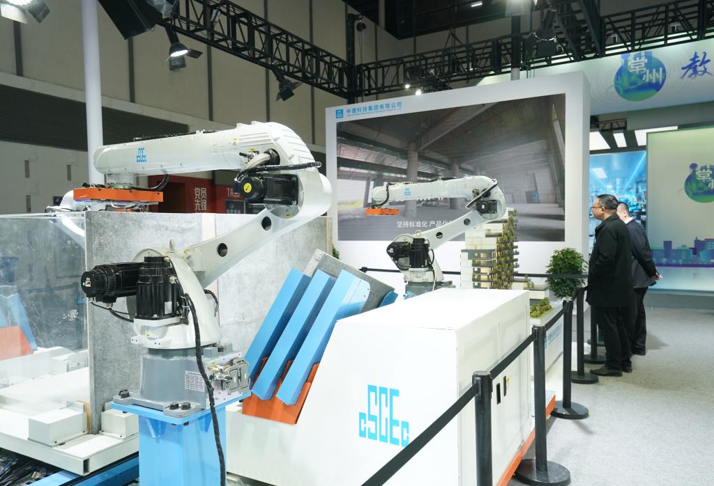4月1日,观众在2025江苏绿色低碳建筑国际博览会的中建科技展位上参观。新华社记者 季春鹏 摄