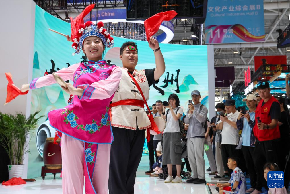 5月22日,观众在文博会山西展台观看非遗展示。新华社记者 梁旭 摄