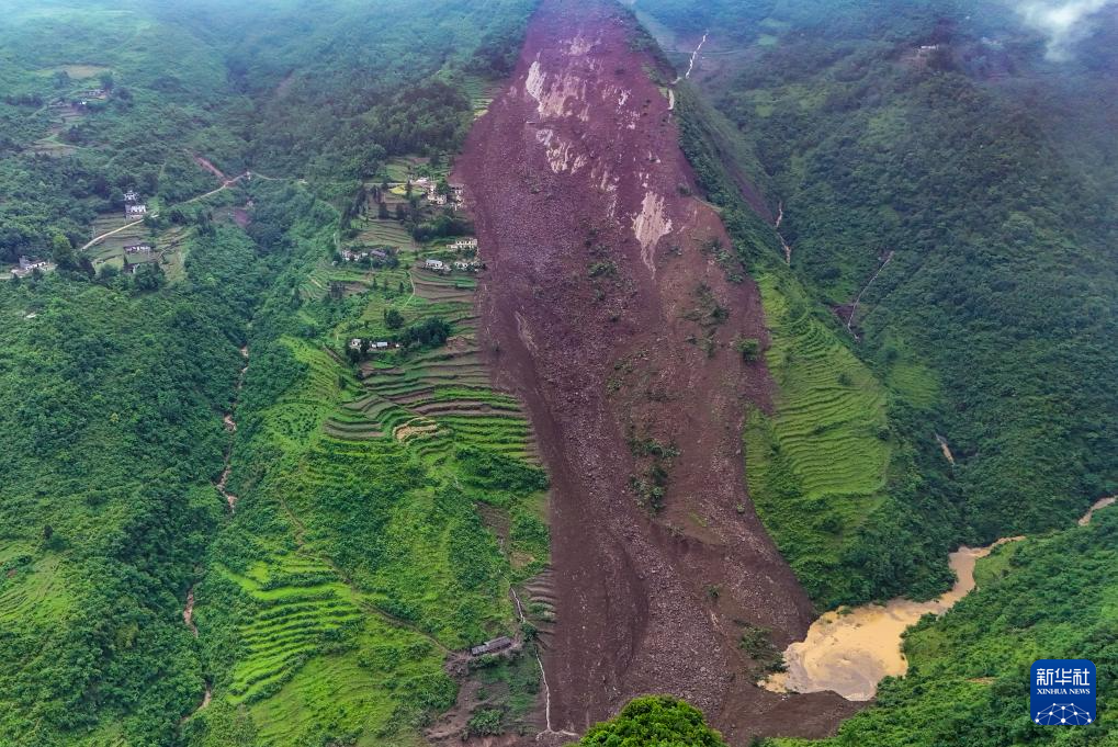 这是大方县果瓦乡庆阳村山体滑坡发生后的现场画面(5月22日摄,无人机照片)。新华社发