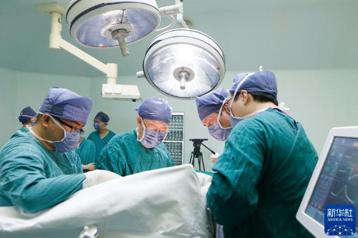 2019年3月15日,97岁高龄的吴孟超(左二)坚持工作在手术台上。新华社发(曹希 摄)