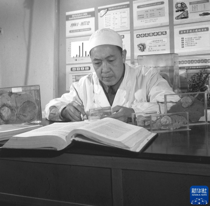 1980年,吴孟超在总结常温全肝血流阻断切肝的经验。新华社发(倪广林 摄)