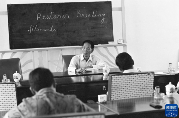 1980年,袁隆平在长沙举办的国际杂交水稻育种培训班上讲授杂交水稻选育课。新华社记者 王平 摄