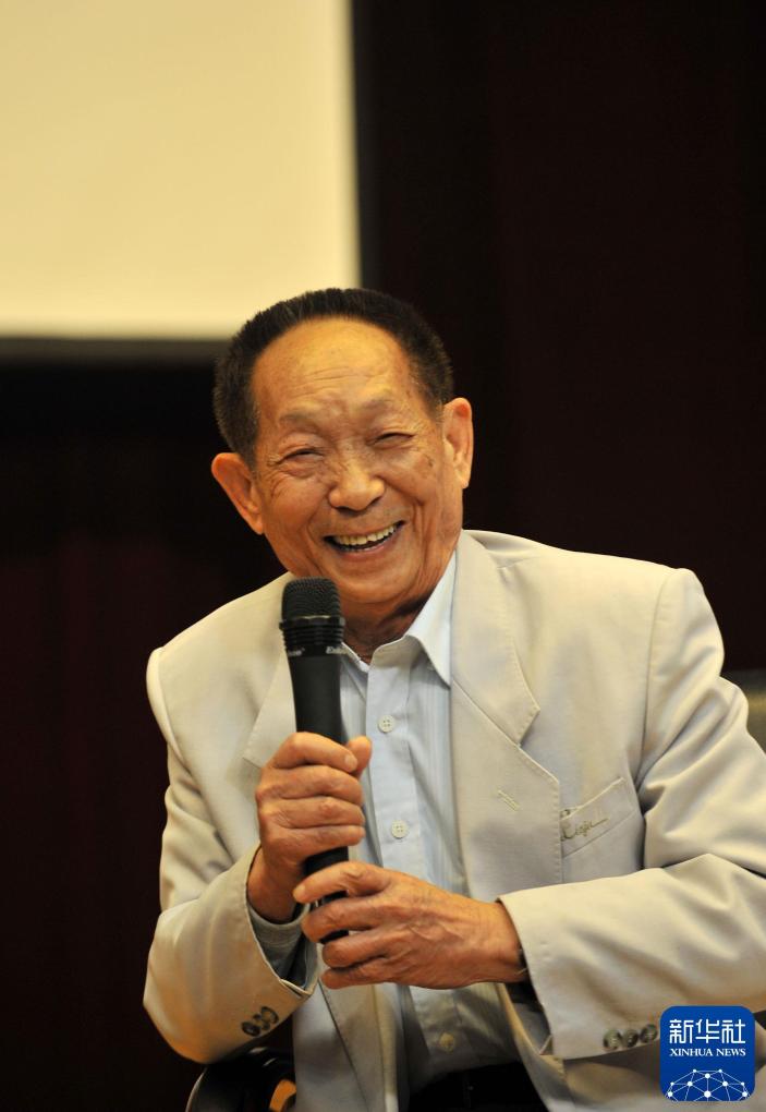 2009年4月21日,袁隆平在母校武汉四中(前身为博学中学)报告厅回答学生的提问。新华社发(周超 摄)