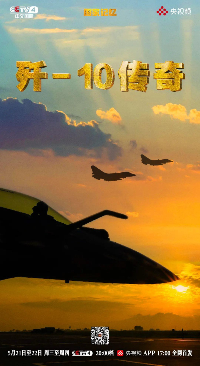 由中央广播电视总台华语环球节目中心策划推出的纪录片《歼-10传奇》于5月21日至22日晚八点在CCTV-4《国家记忆》栏目播出。本片以歼-10飞机的研制历程为主线,通过大量珍贵历史影像、亲历者口述和专家访谈,全方位、多角度回顾这款中国自主研发的“争气机”诞生背后的故事,深入展现宋文骢等老一辈航空人的报国情怀与科学精神。