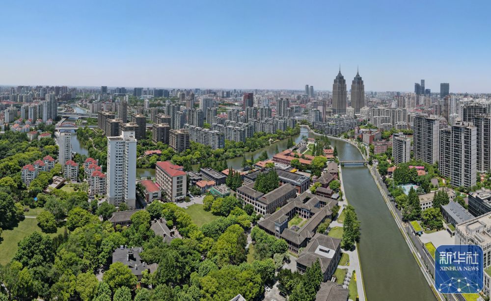 苏州河华东政法大学段的历史建筑群(无人机照片,2023年3月3日摄)。