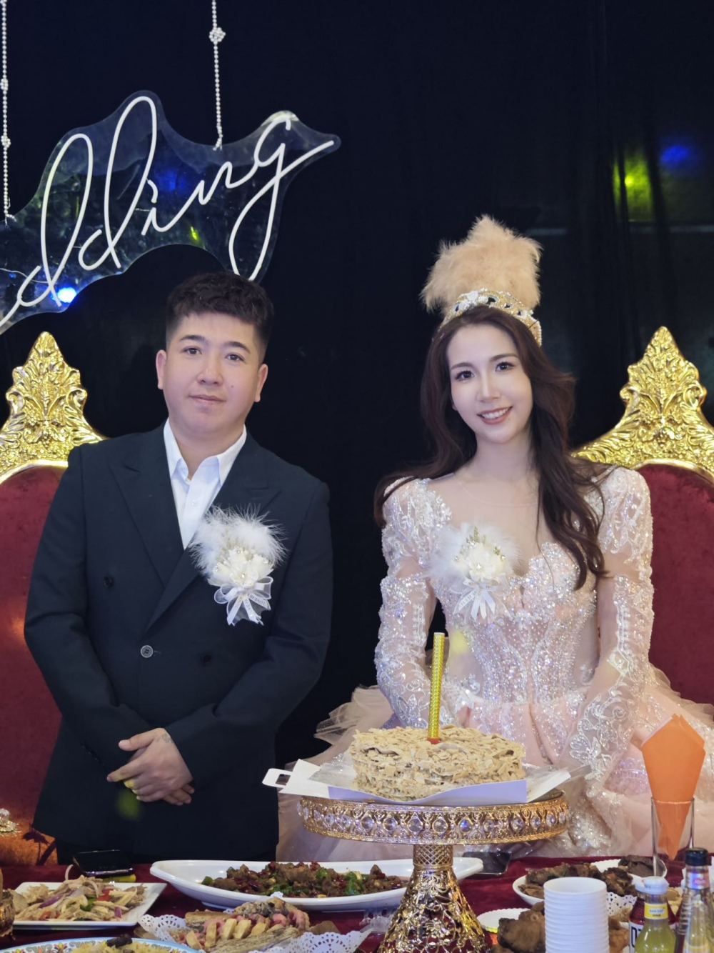 买迪娜和别格扎提在婚礼上的合影。(受访者供图)