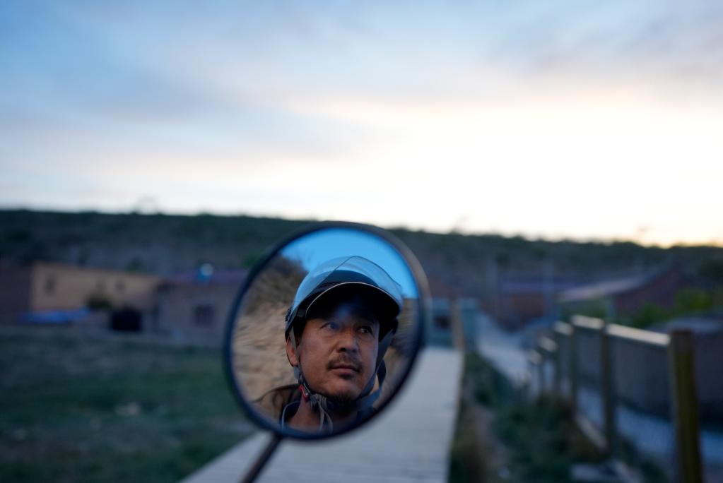 5月11日,李世翔骑摩托车巡查位于海原县的全国重点文物保护单位——柳州城址。